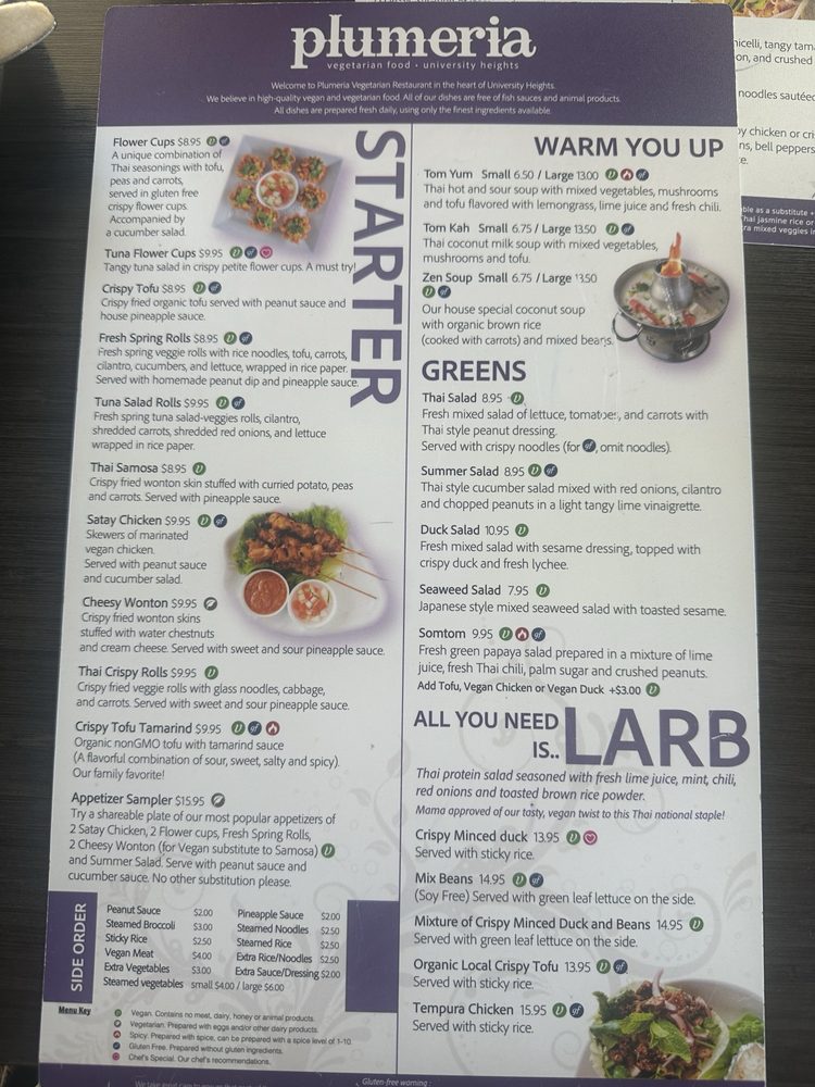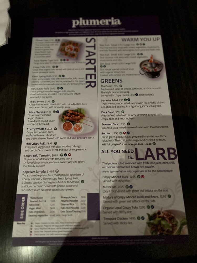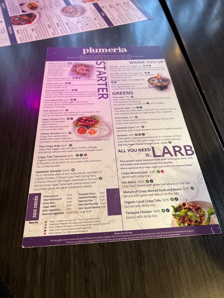 Introducing the menu at Plumeria Vegetarian is stepping into a realm of vibrant flavors and creativity. This Thai-inspired, vegetarian and vegan restaurant in San Diego offers a wide array of dishes, from crispy tofu larb to spicy noodles. With a focus on fresh, local ingredients and a commitment to eco-friendly practices like compostable containers and plastic-free packaging, Plumeria Vegetarian enhances the dining experience.